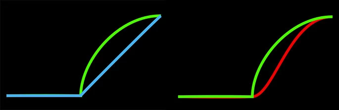 緑:円形、青:三角、赤:滑らか(S型の形状)