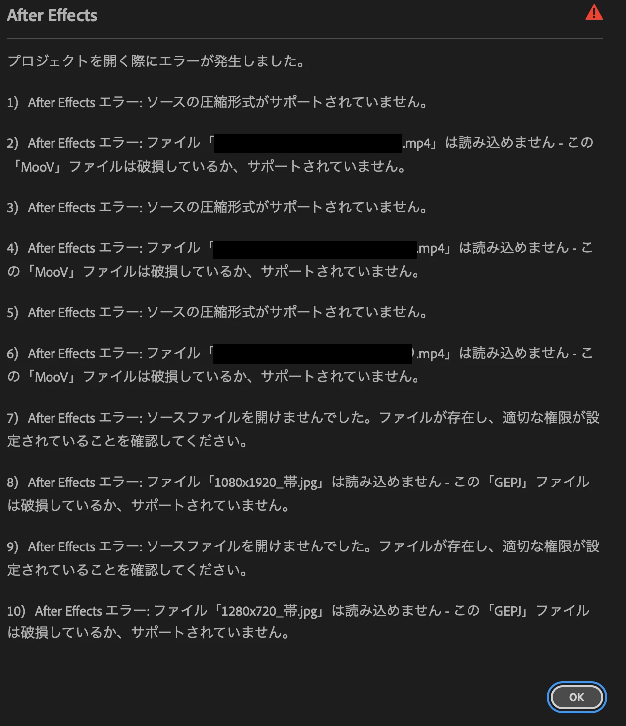 Ver25.4でプロジェクトを開いた際に添付のエラーが出てしまいます・・