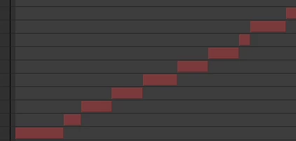 画像1枚目のように、レイヤーの終了位置がバラバラのものを