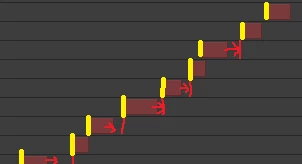 終点を上レイヤーの始点(赤色の縦棒)まで持っていくというものでした。