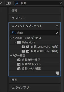 「自動」の付くエフェクトまたはアニメーションプリセットは、下図のものに限られます。