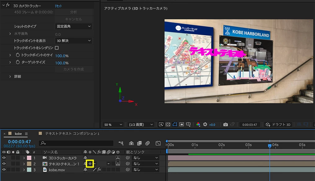 実写映像に文字を合成する動画を作っています。
