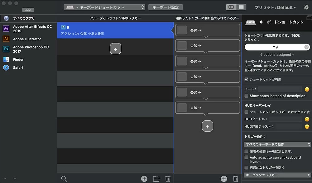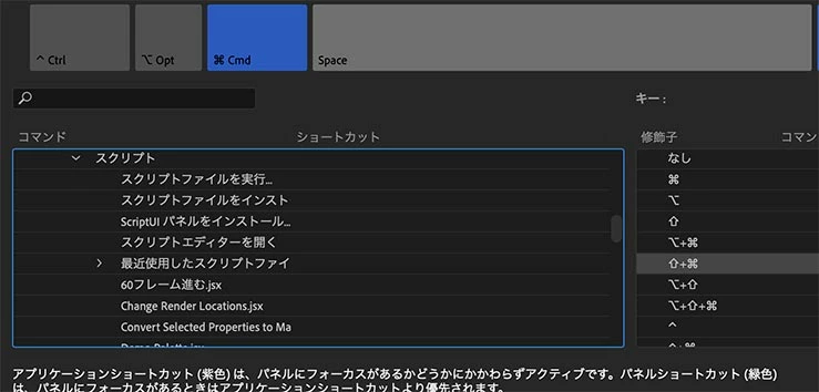 リストにあるスクリプトは、ショートカットが割り当てできるようになっています。