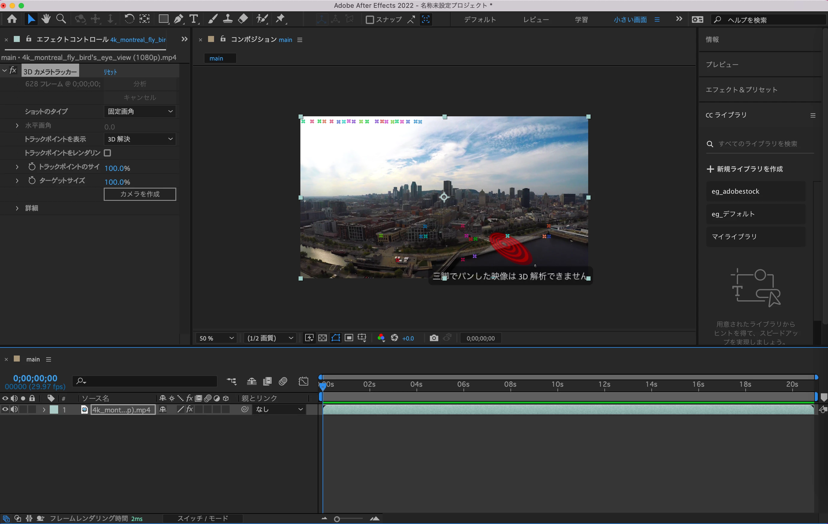 3Dカメラトラッカーで「三脚でパンした映像は3d解析できません」となってしまいます。