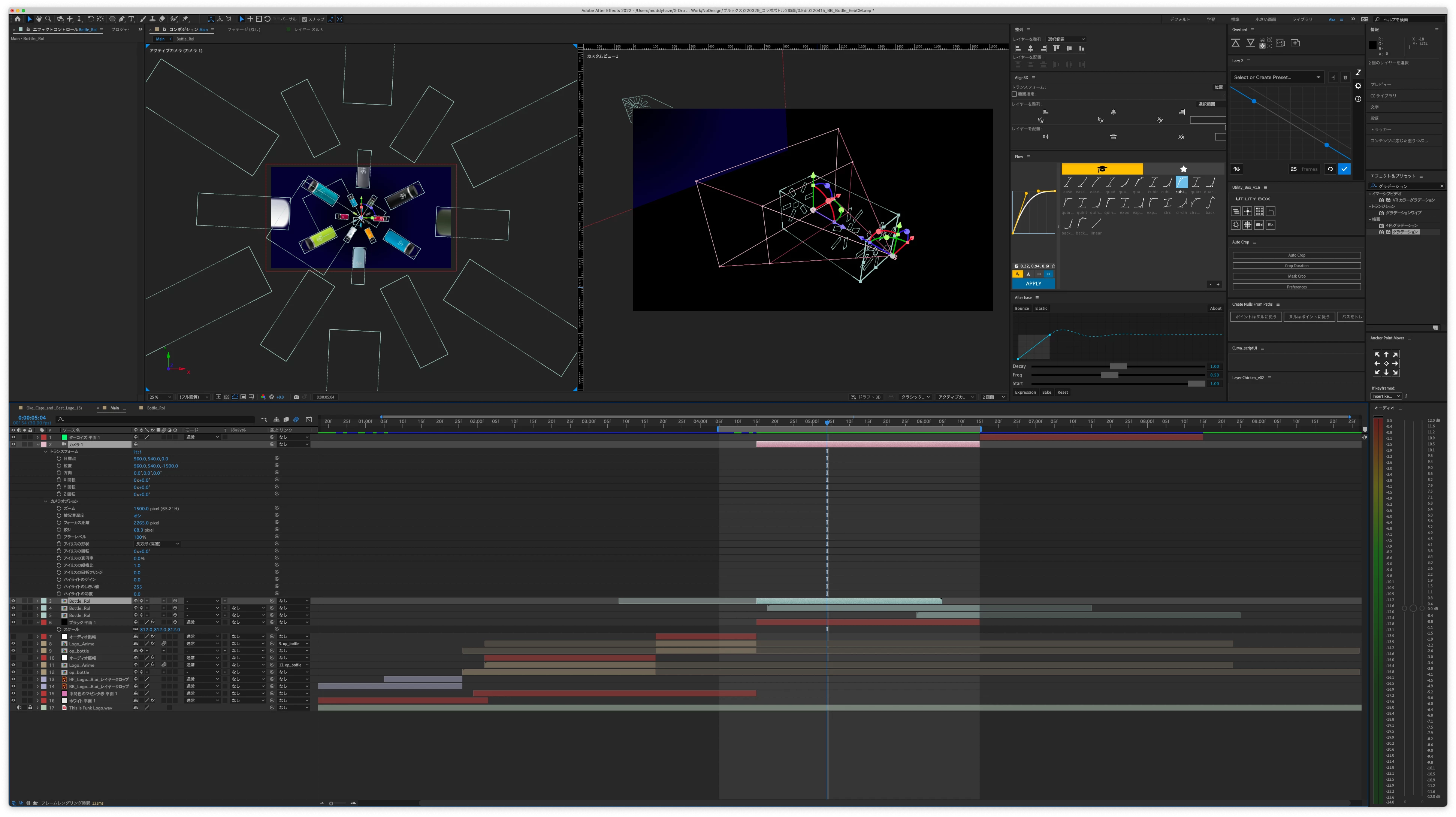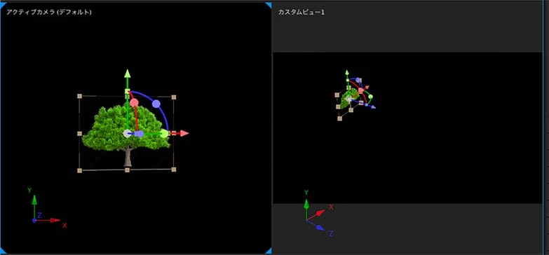 3Dレイヤーとカメラの関係を調整しようとカスタムビューで斜めから見た表示にしたところ、