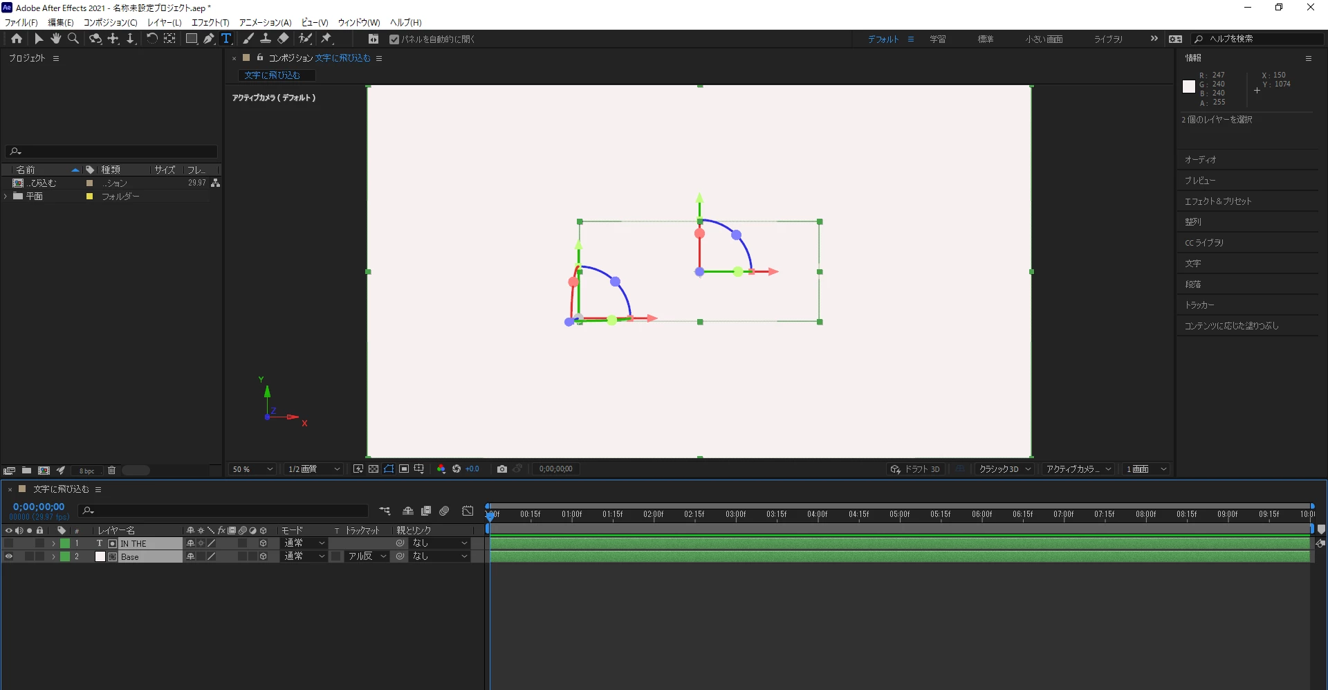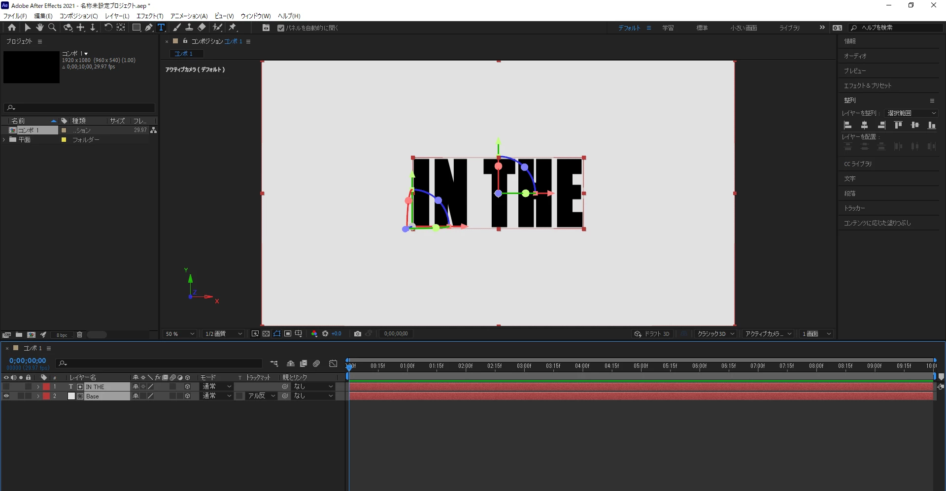 上記のチュートリアルをやっています。1:10くらいからのところで、3Dレイヤーをonにすると「IN THE」のテキストが見えなくなってしまいます。