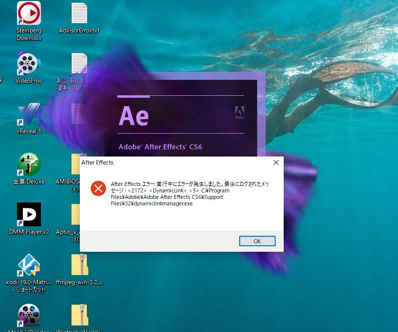 ADOBE AFTER EFFECTS CS6 がWIN10で突然起動しなくなりました