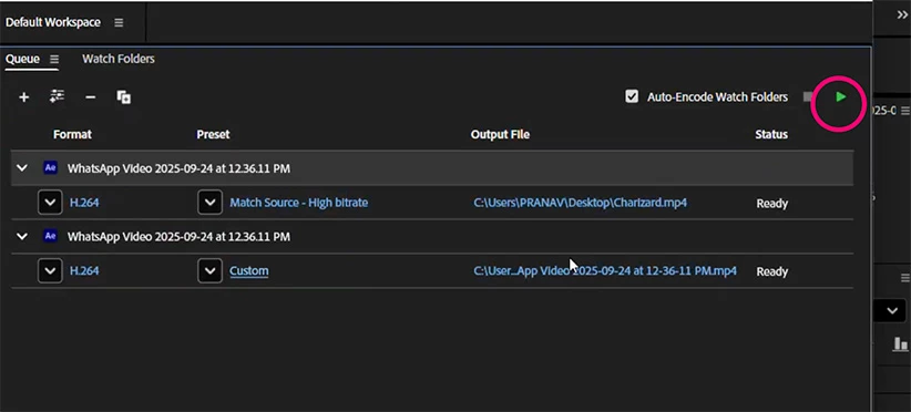 Whenever I save the After Effects Mp4 file from Media Encoder to my desktop, the file is not visible. I have attached a video of the same. Please help.