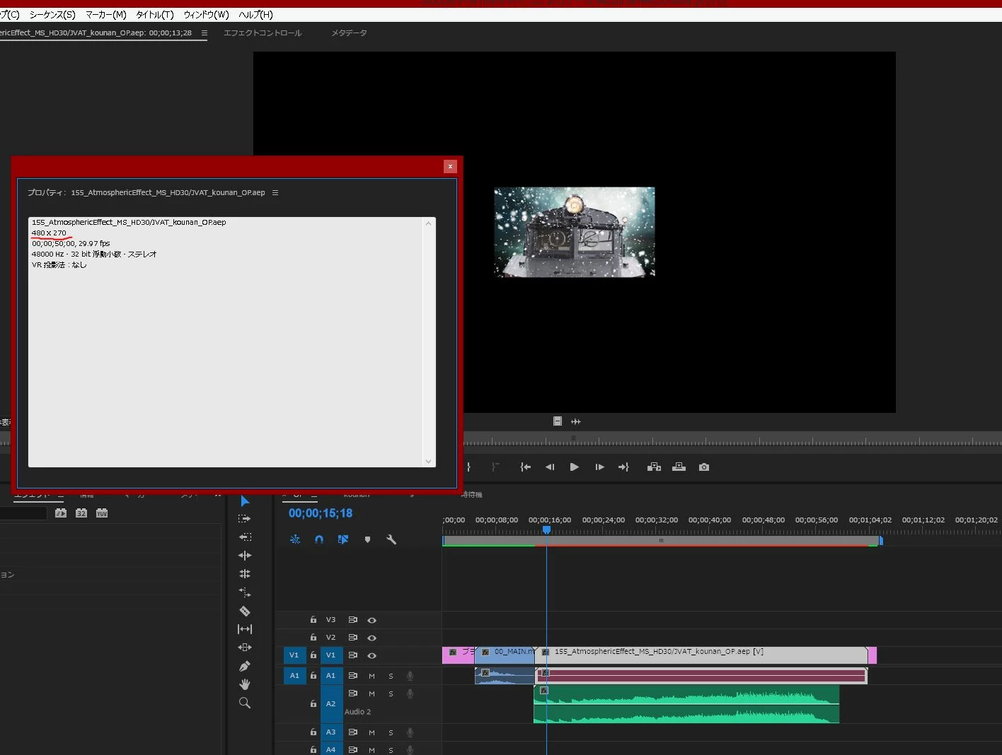 下記のスクショは受け取り後にシーケンスに載せたものです。 全画面表示にしていますが
