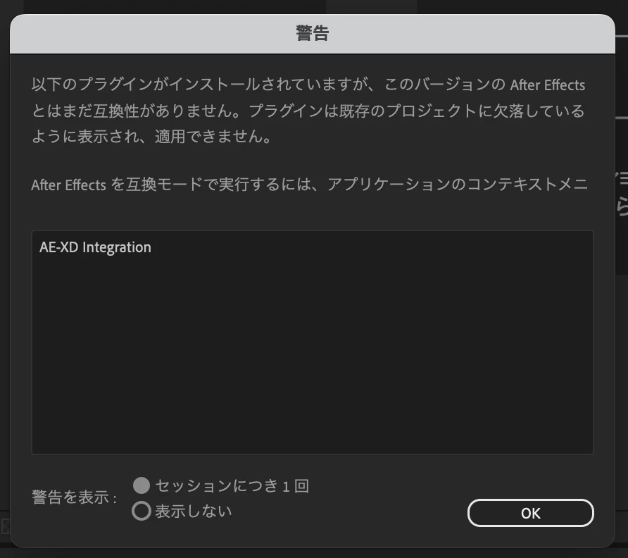初めてモーショングラフィックをやろうと思い、AEを開いたんですが、このエラーが出てきます。アップデートも再インストールもしました。