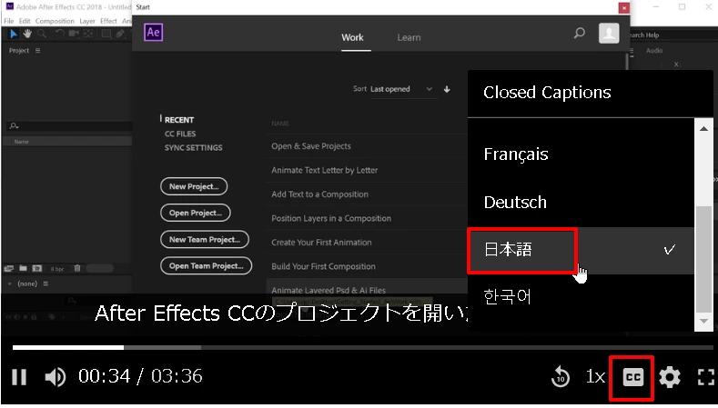 AEを立ち上げた時に出てくる学習パネルで