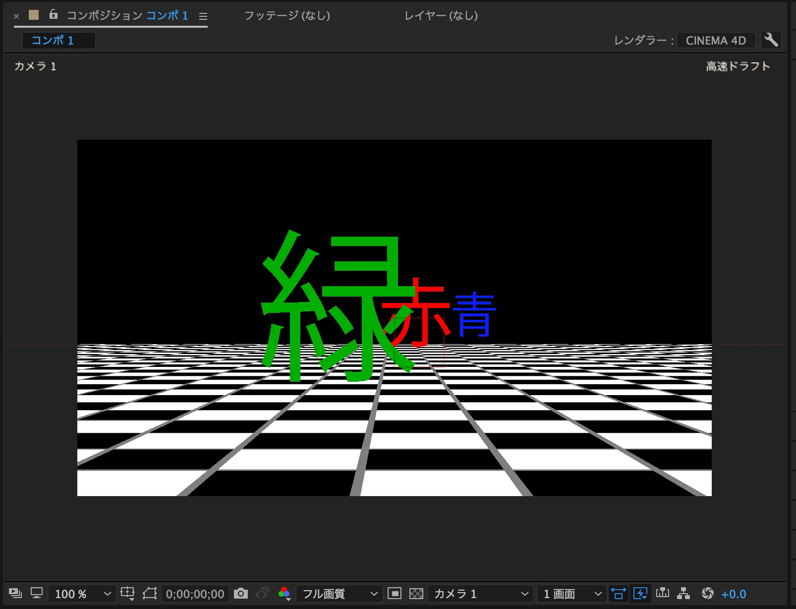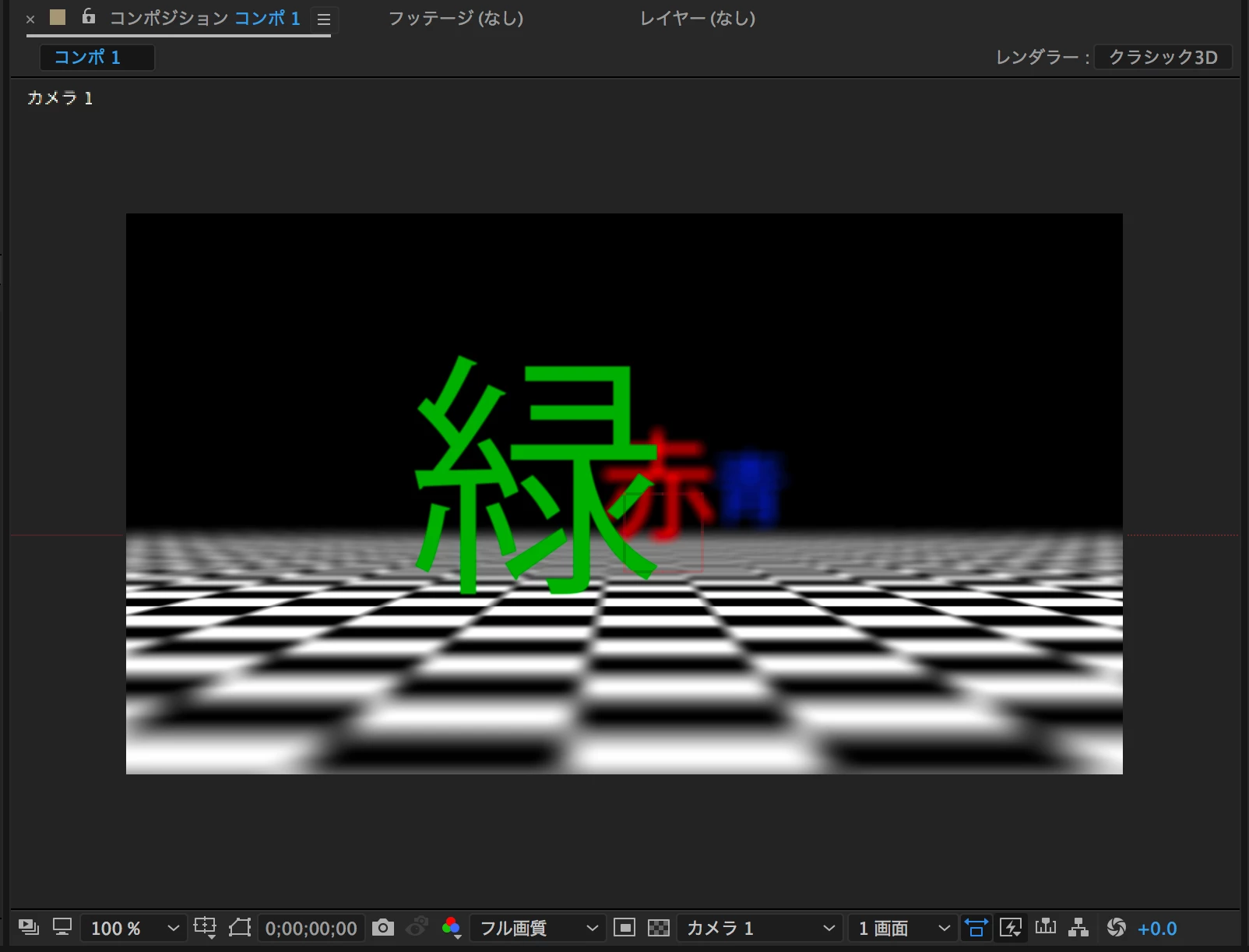 スクリーンショットのような、厚みのない平面の3Dレイヤーをレンダリングする時は、「クラシック3D」で、厚みのある3Dレイヤーをレンダリングする時はレイトレース3DまたはCinema4Dのレンダラーを使います。