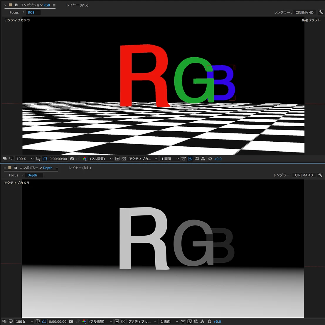 また、Cinema4D Liteを使わず、簡易なデプス パスを作って品質はともかくボカすことはできます。(アニメーションは多分無理です)