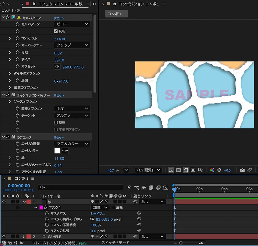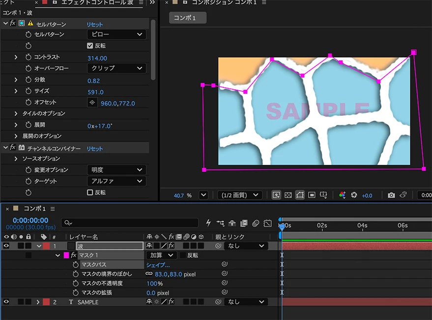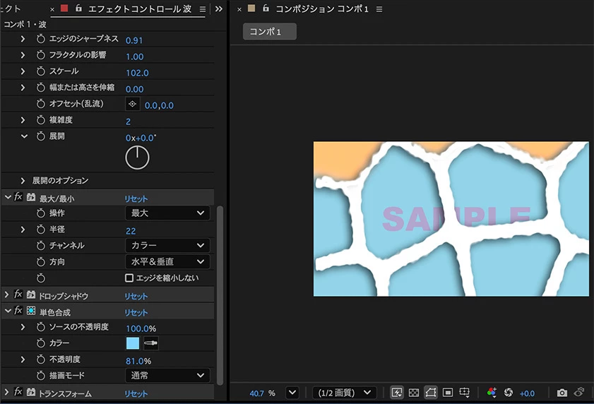 このようなトランジションを作成したいのですがこのイラストのような波の波紋?を表現するためにはどのように作成したら良いのか行き詰まってしまい、もし分かる方がいましたら教授お願いしたいです!