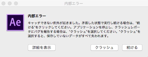 AE CC 2019 エクスプレッションの入力で「内部エラー」ダイアログ