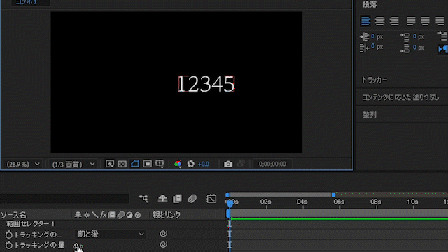 とあるTutorial動画をやっていて、text のanimate で trackingを選ぶと