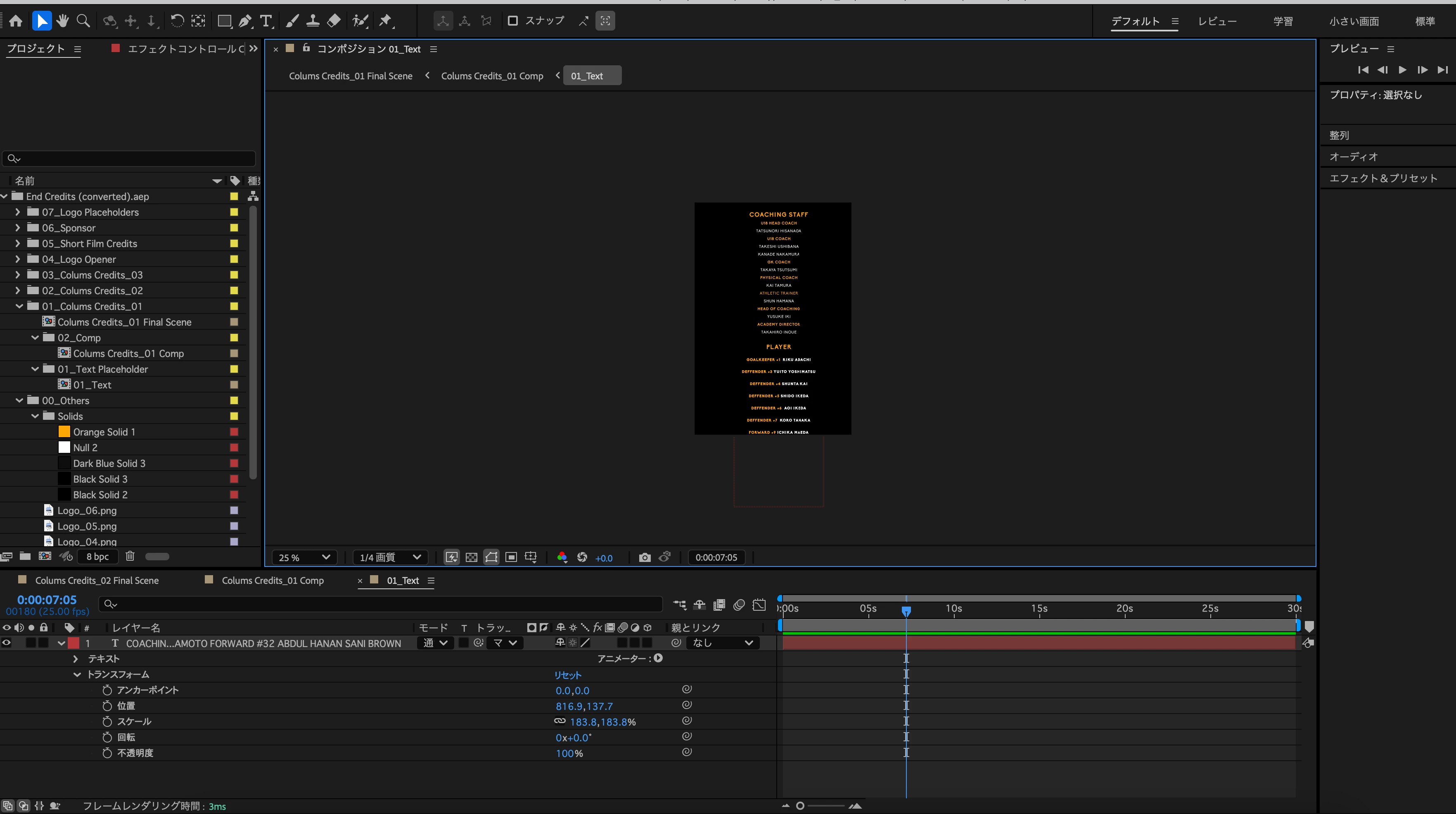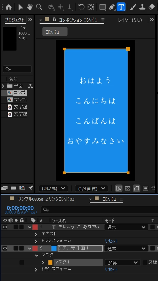 ロールするアニメーションは、このコンポジションのテキストレイヤーの位置が移動しているのでしょうか、それとも、別のコンポジション上で移動しているのでしょうか?