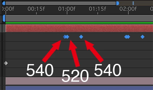 3箇所のキーを選択してコピーし、別の位置に貼り付けます。