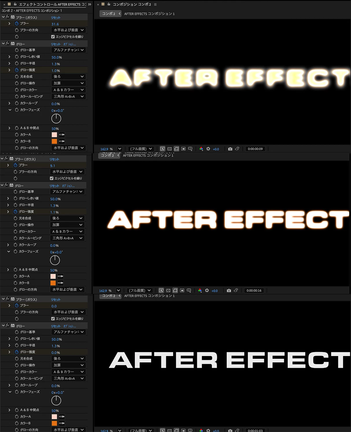 AAwesome_image0309ParticipantForum|Forum|1 year agoMarch 19, 2025質問after effectのテキストアニメーションについてForum|Forum|1 year agoMarch 19, 2025返信数 2.196 ビュー動画のように神々しく光り滲みながらテキストが出現する方法がわかりません。どなたかわかる方よろしくお願いします。にじみ出るテキスト.zip