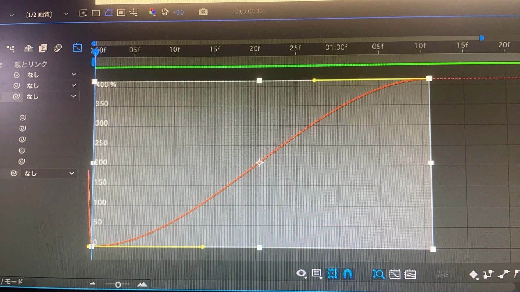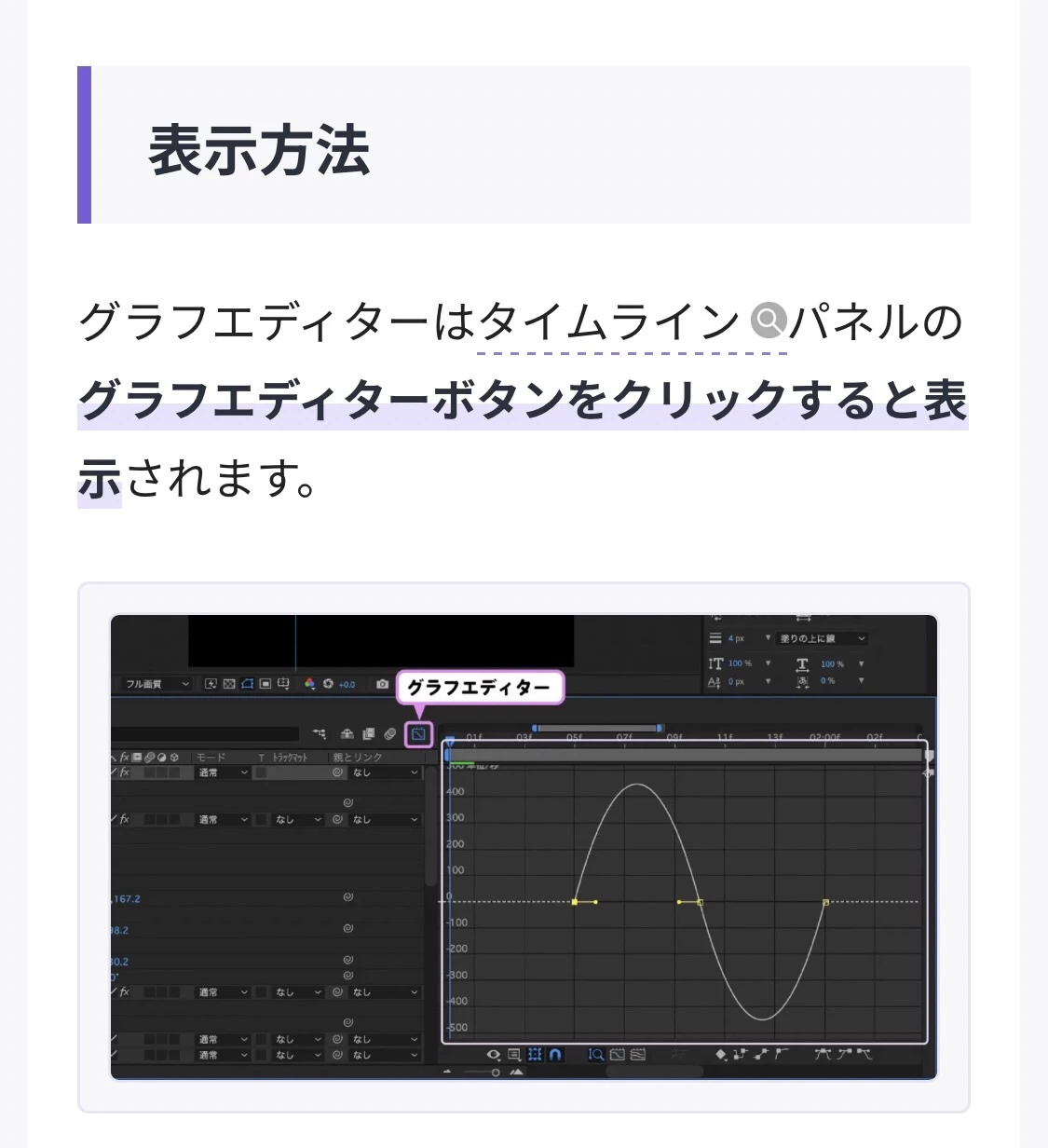 2つ目は、アニメーションをつける際にイージーイーズをかけてグラフエディターを押すと