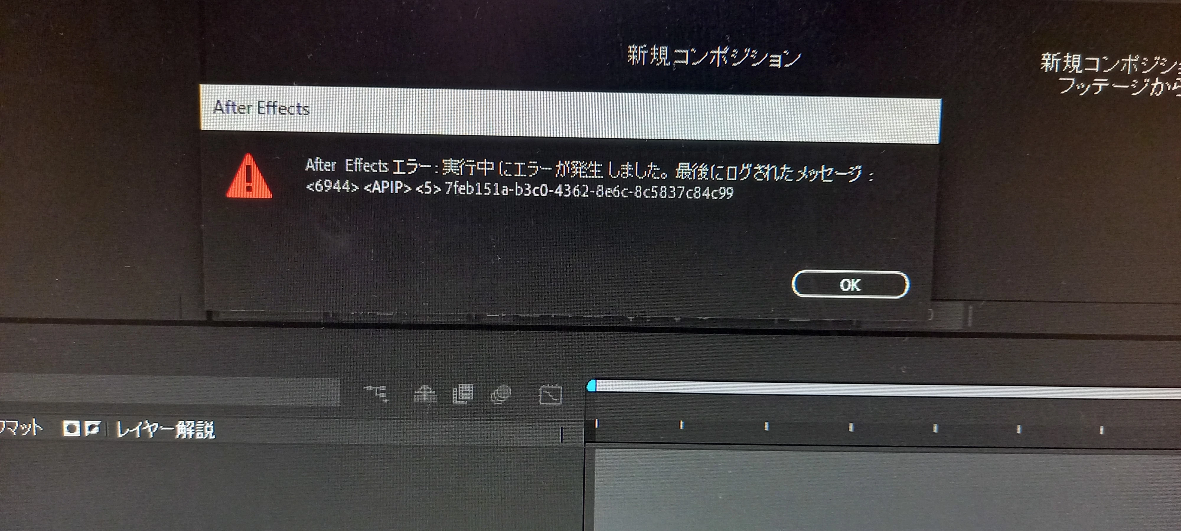 貴貴史316441751ofkKnown ParticipantForum|Forum|2 years agoNovember 2, 2023質問AFTER EFFECT 起動トラブルForum|Forum|2 years agoNovember 2, 2023返信数 2.690 ビューAFTER EFFECTを起動すると毎回このような画面になり強制終了になります。対処法を教えていただけないでしょうか?フリーズまたはハングエラーまたは問題
