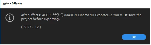 After EffectsからCinema4Dに書き出しをしようとするとこのようにエラーが出てきます。