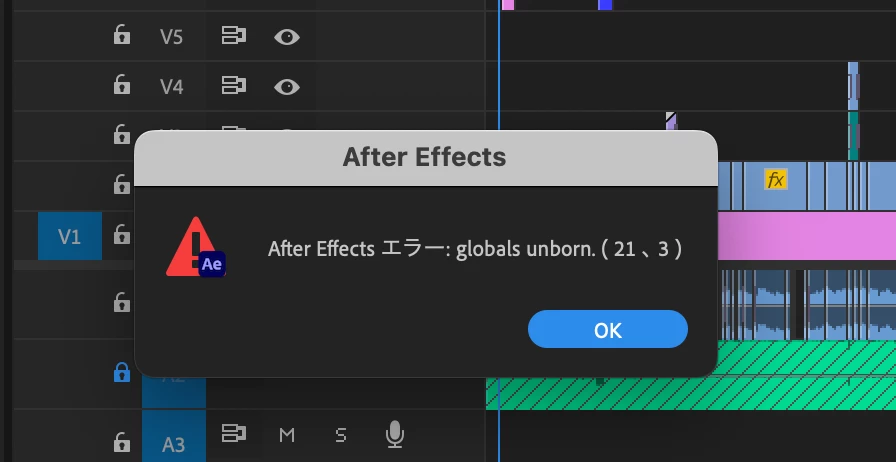 何度もAeを開けては、エラーが出たりを繰り返したり、PCの再起動したりしても、エラーが出てきます。