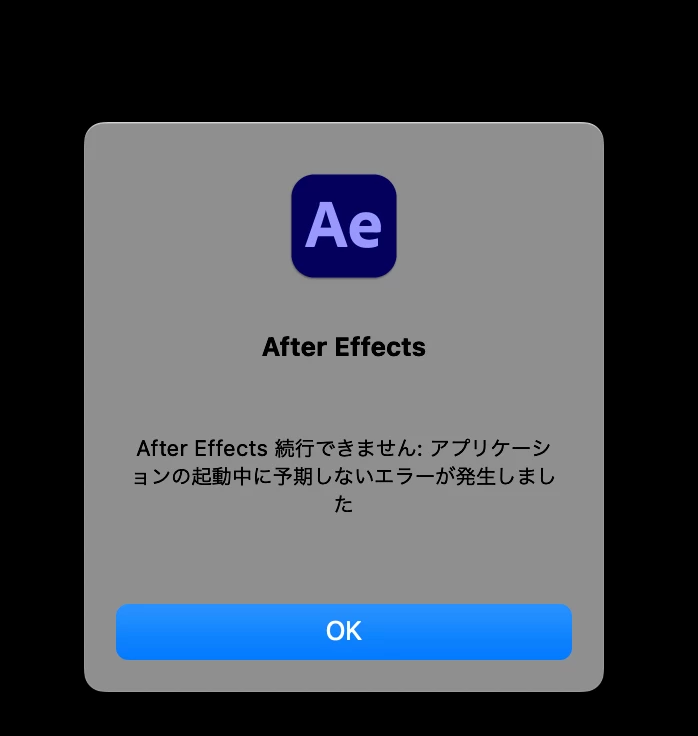 After Effectsを開けなくなった|内部構造破損(g)(25、2)