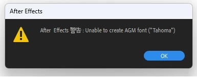 After Effects 警告:Unable to create AGM font ("Tahoma") のエラーについて