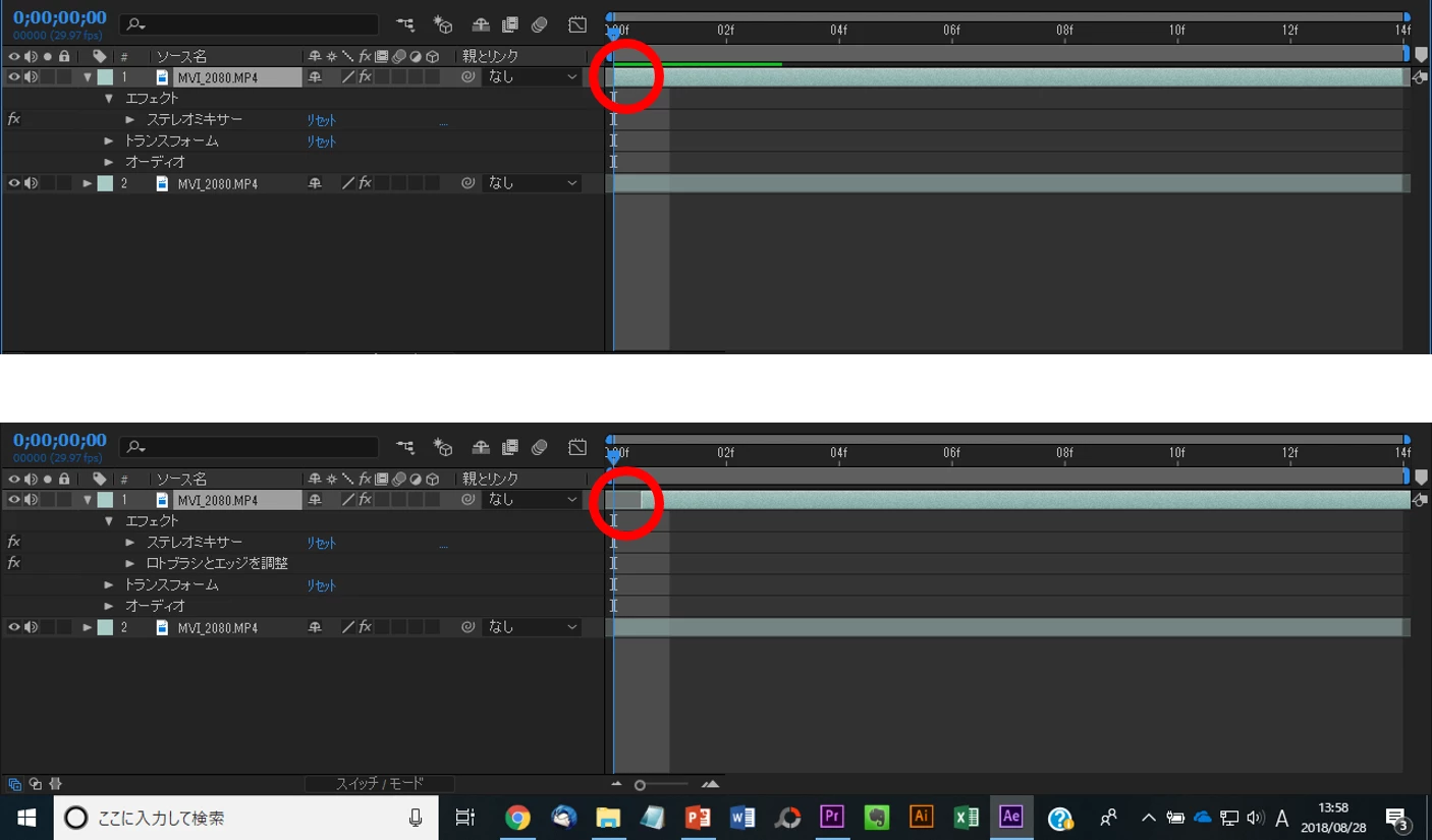 After Effects CCにてタイムライン上の動画にロトブラシを使用すると位置がずれる