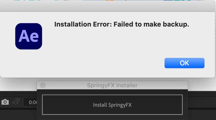 誠誠稲38511710Participating FrequentlyForum|Forum|5 years agoMarch 24, 2021QuestionAfterEffectsでスクリプトインストール時のエラーForum|Forum|5 years agoMarch 24, 20211 reply357 viewsAfter Effectsでフラッシュバックジャパンで購入したスクリプトSpringyFXを使用するためにAfter Effectsを開きファイル→スクリプト→スクリプトファイルを実行を選択してSpringyFX - PE Installer - CS6 only.jsxを選んだところInstall SpringyFXのボタンが出現して押してみたのですが、添付のような画像のエラーが出てきたのですが、原因分かったりしますでしょうか?FAQエラーまたは問題
