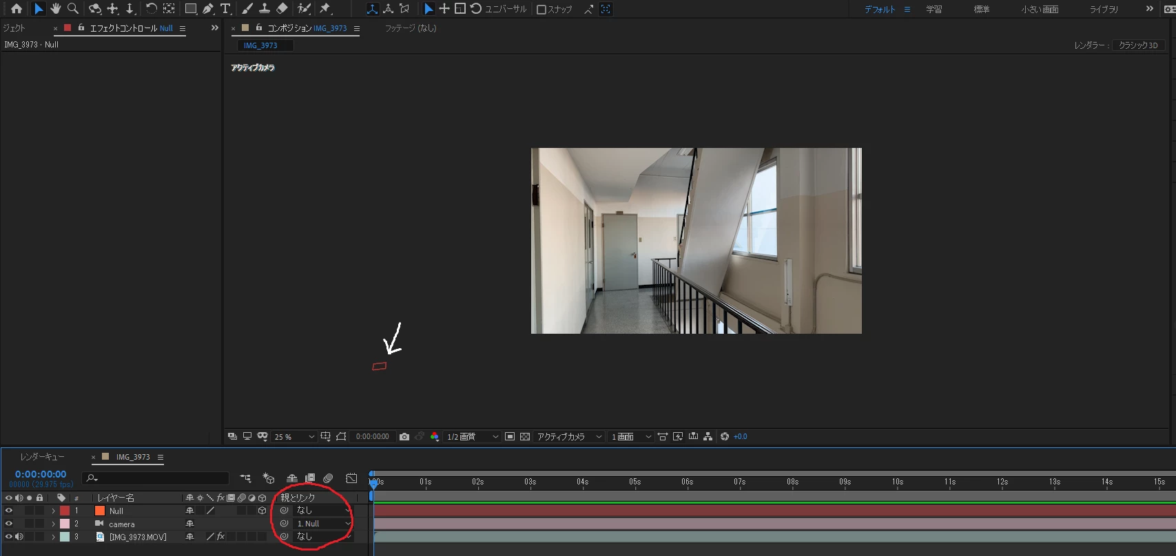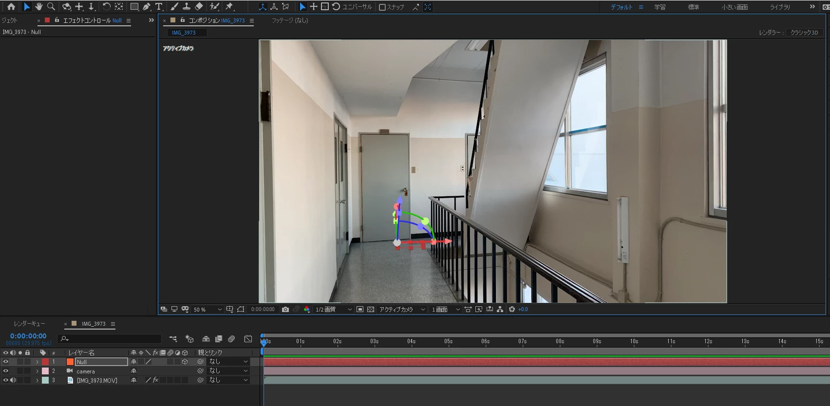 AfterEffects 3Dカメラトラッキング(Nullとカメラの作成の場合)