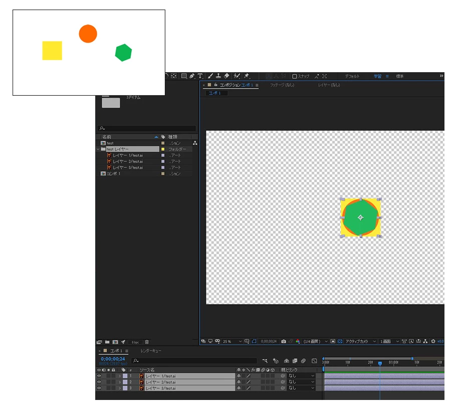 After EffectsでAiファイルを「コンポジション」「レイヤーサイズ」で読み込むと、レイヤーが全て中央に配置されてしまいます。