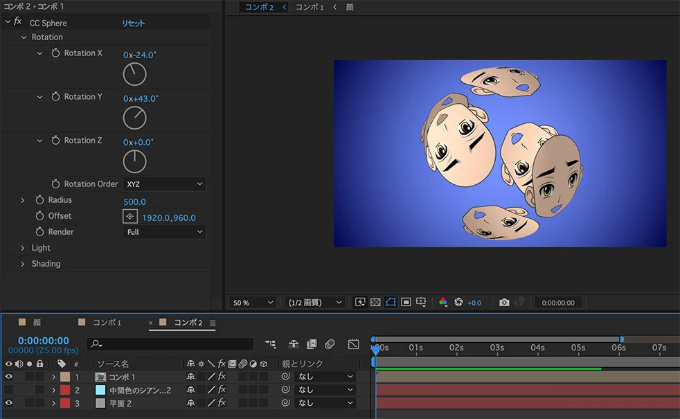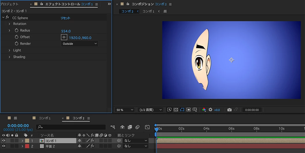 2:1のレイヤーにCC Sphereを適用します。