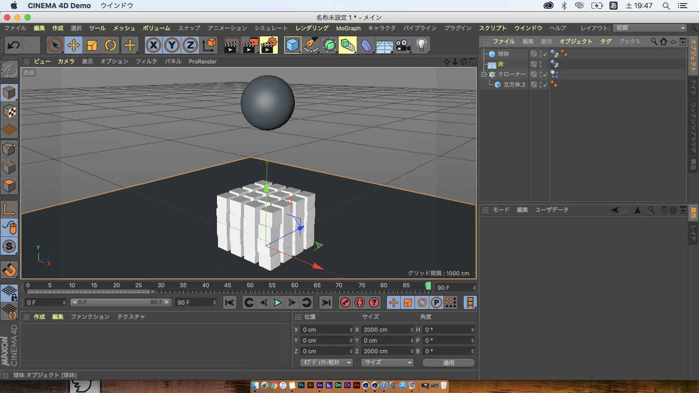 こちらのチュートリアル動画の開始26分前後の、cinema4Dで球体が落下するアニメーションなのですが、2枚目の画像のようにクローナーが崩れてしまうだけになります。解決策を教えていだたきたいです。よろしくお願い致します。