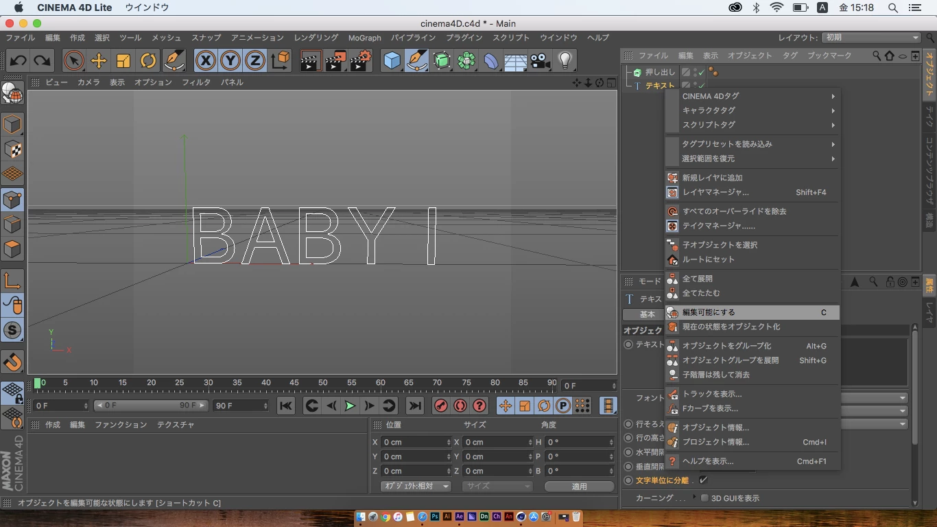 cinema4Dのテキストの文字の分解について