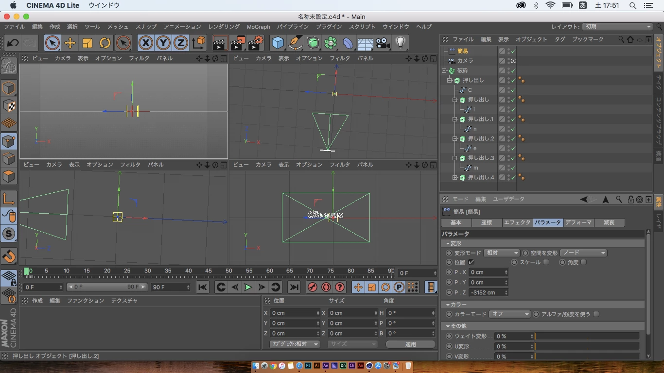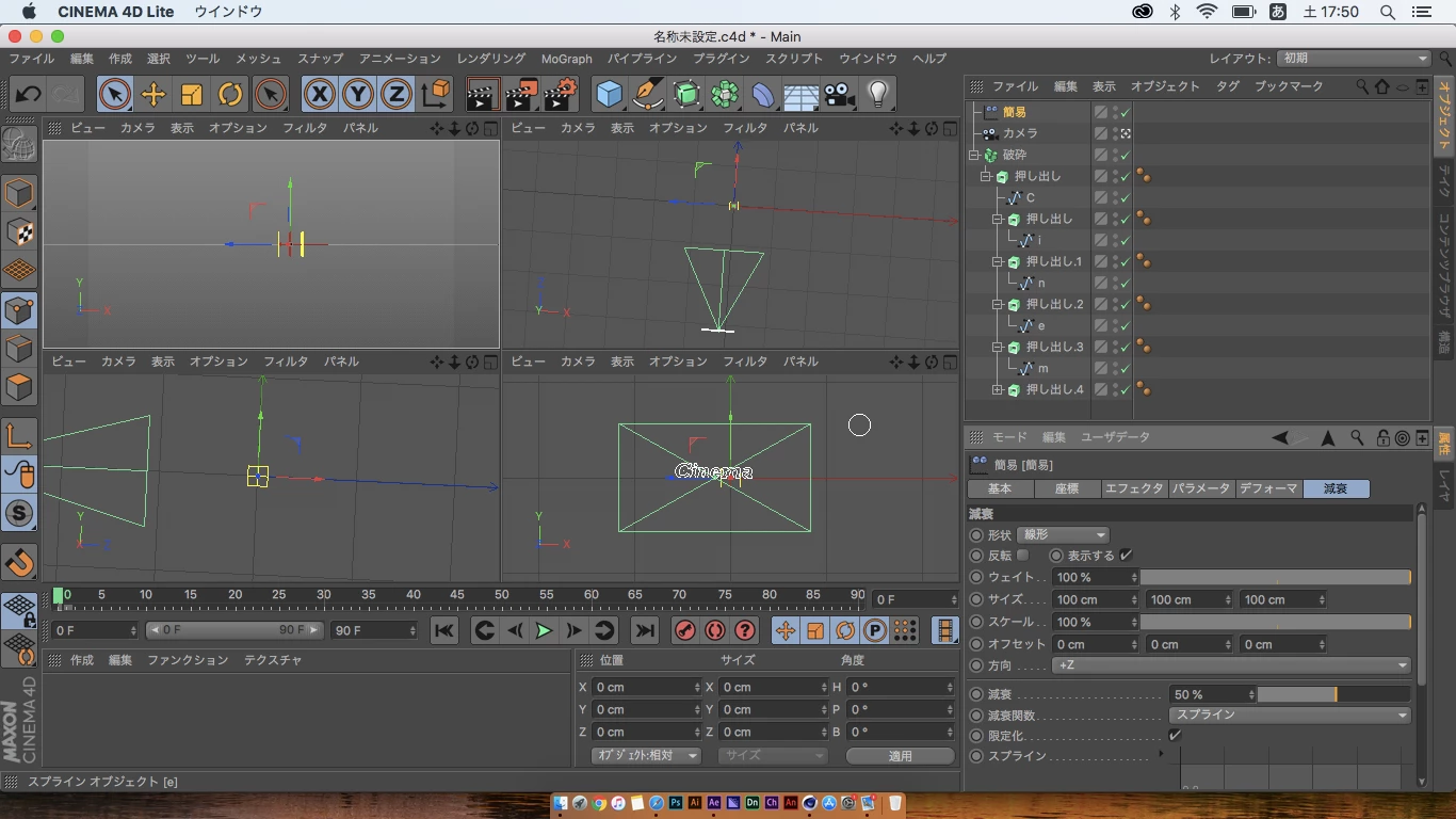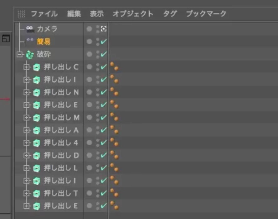 cinema4Dの「破砕」「簡易」のMoGraphを使ったテキストアニメーションについて