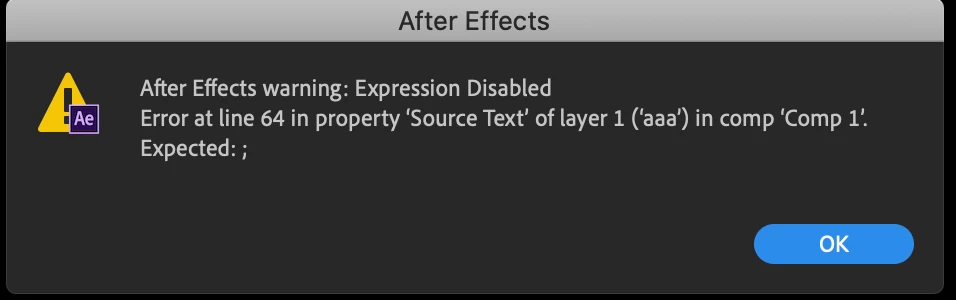 英語版でしか使えないと知ったので、英語版でAEを起動させて使ってみたところ、添付画像のエクスプレッションエラーがでました。