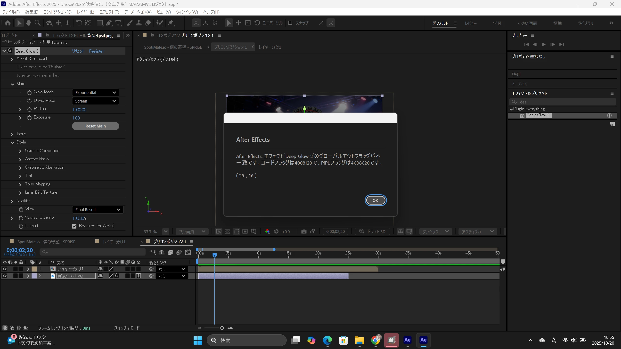 初めてプラグインを購入したものです!いつも通り作っていてDeepGrowを適用しようとしたら1枚目の写真の表示が出てき、訳が分からずOKを押すと2枚目のように線が入ってしまって困ってます。どうすればこの線は消えますか?詳しい方教えていただきたいです