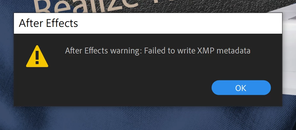 Export Error ,Showing "Failed to write XMP metadata" message