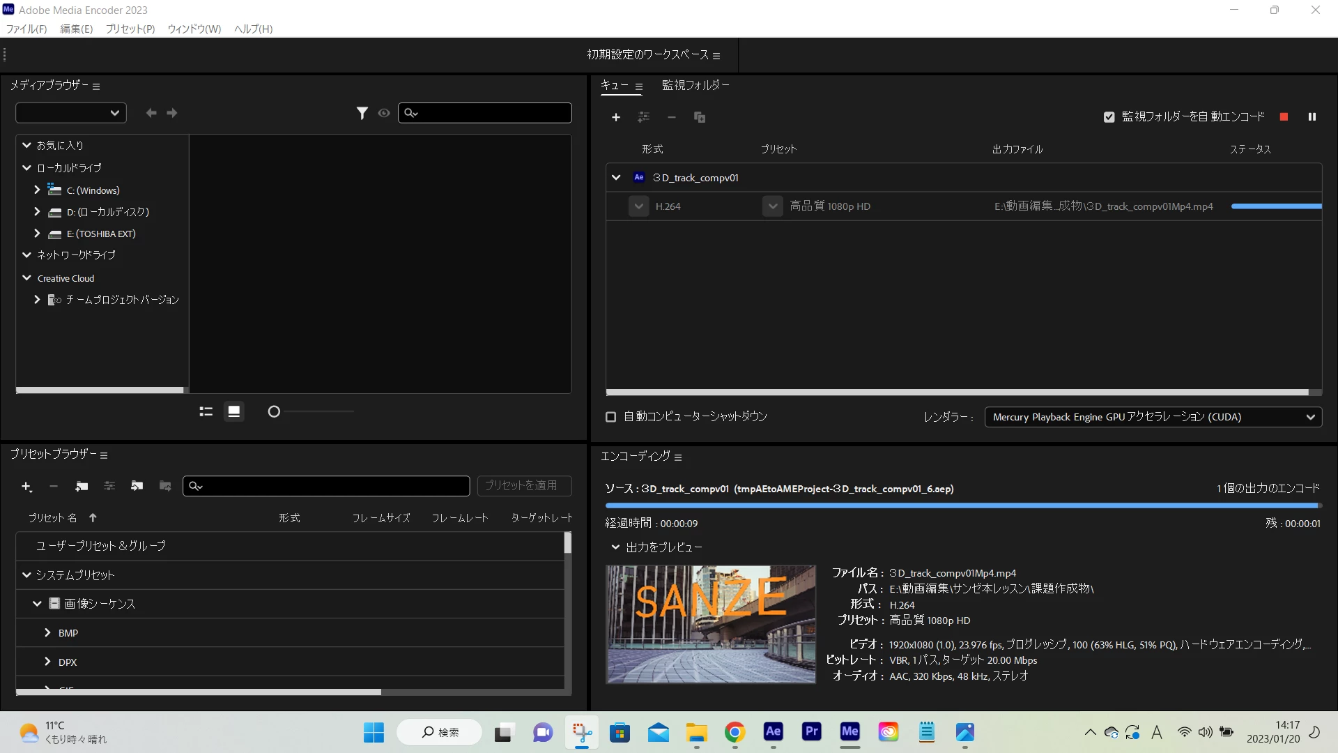 LLapin_movieParticipantForum|Forum|3 years agoJanuary 21, 2023QuestionH264で書き出しができませんForum|Forum|3 years agoJanuary 21, 20231 reply350 viewsAfterEffectのレンダーキューに追加からmov形式で書き出し、その後メディアエンコーダーでH264に書き出したりいろいろ試しましたが、H264形式への書き出しがエラーが出てできなくなってしまいました。解決法がわからずお手上げ状態です。どなたかご存じの方いらっしゃらないでしょうか?よろしくお願いいたします。FAQエラーまたは問題