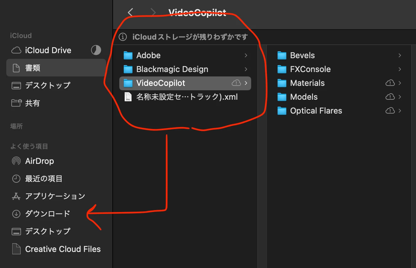 iCloud Driveの”書類とデータ”項目にadobeやVideoCopilotがどんどん追加される