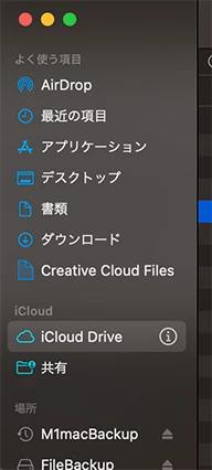 (Finder内で雲マークの中心に!マークがついている状態です)