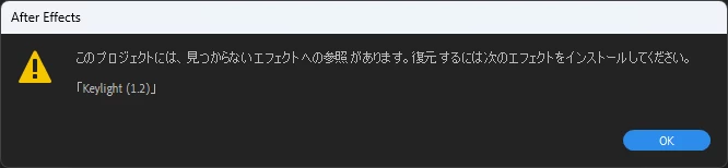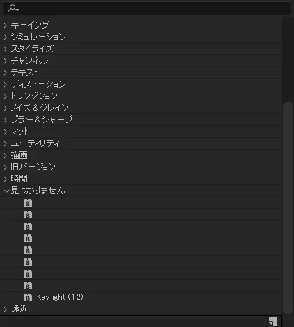 動画編集中にクラッシュが検出されましたという文言と共にkeylight(1.2)のファイルが消えてしまいました。ファイルを開いて、エフェクトファイルの中から探したのですがどこにも見つからないので、エフェクトが開けません。バージョンは24.6.0です。keylightのフォルダは存在していて、フォルダ内は画像の通りです。