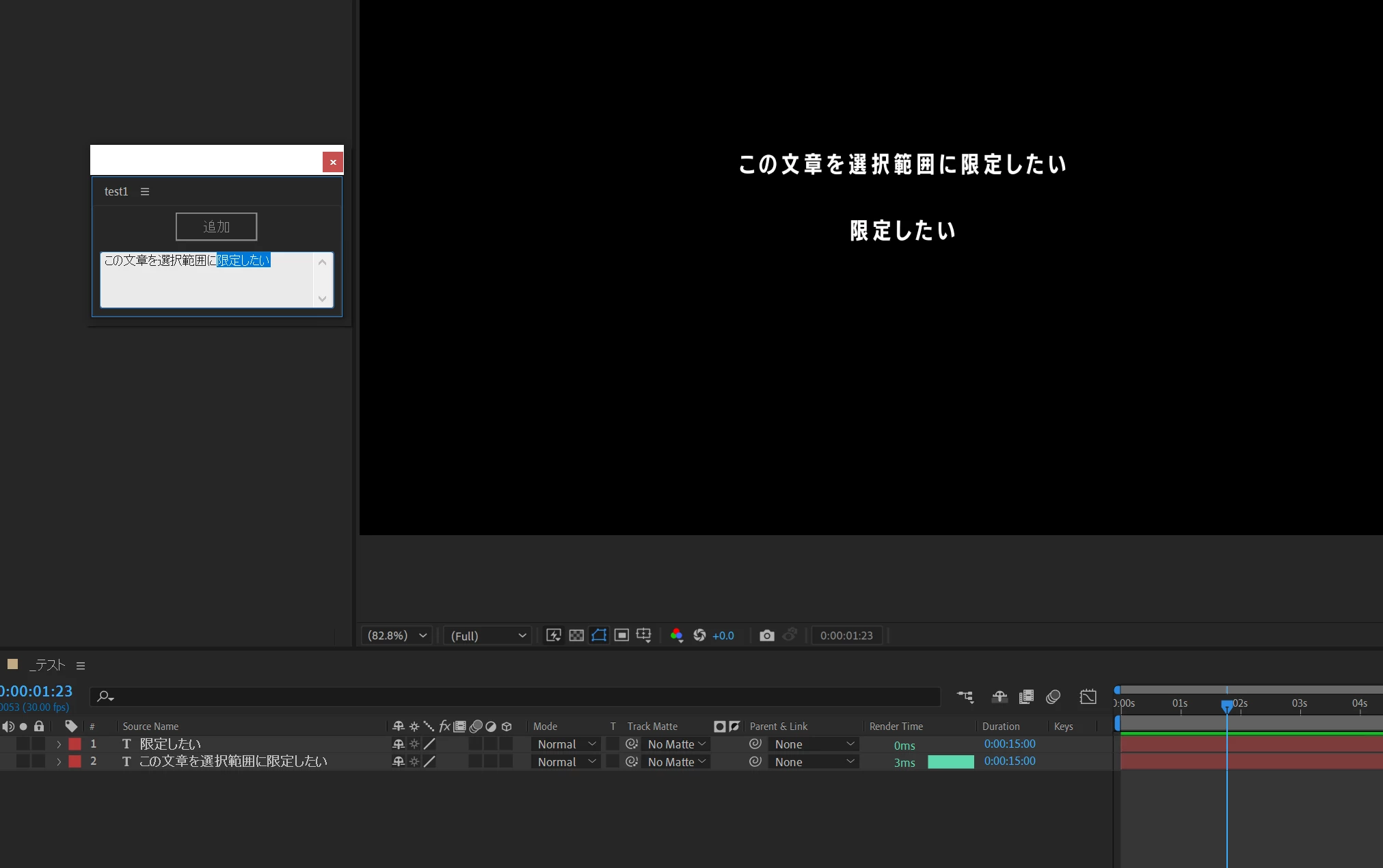 ・カーソルで範囲選択している場合は、その範囲内にある文字列のみをテキストレイヤーとして追加する