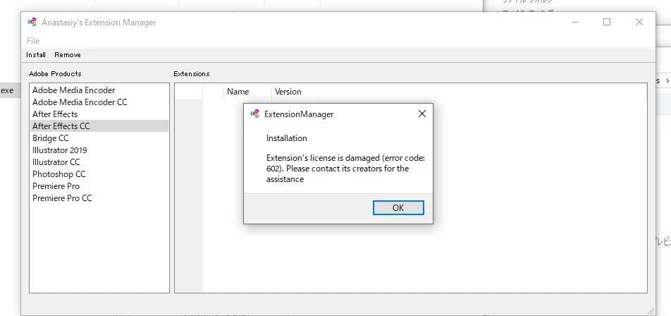 解凍したAutodesk_Maya_Live_Link_1.0.0.zxp のインストールを完了できず。