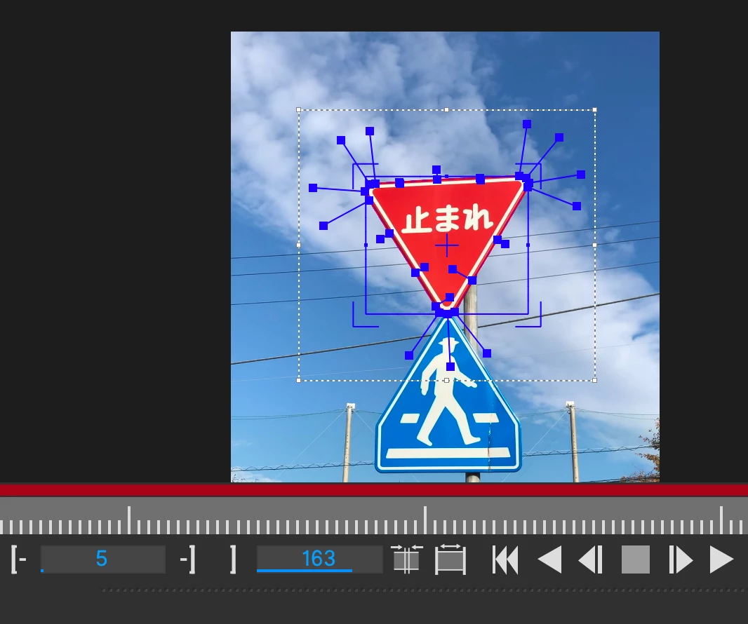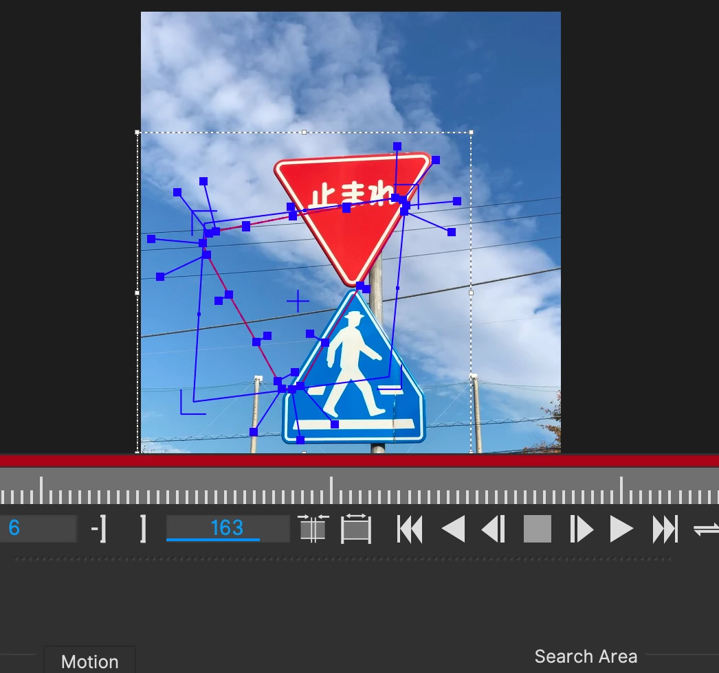 画像の標識(とまれ)のみをトラッキングしたいのですが数フレームでずれ始めます。