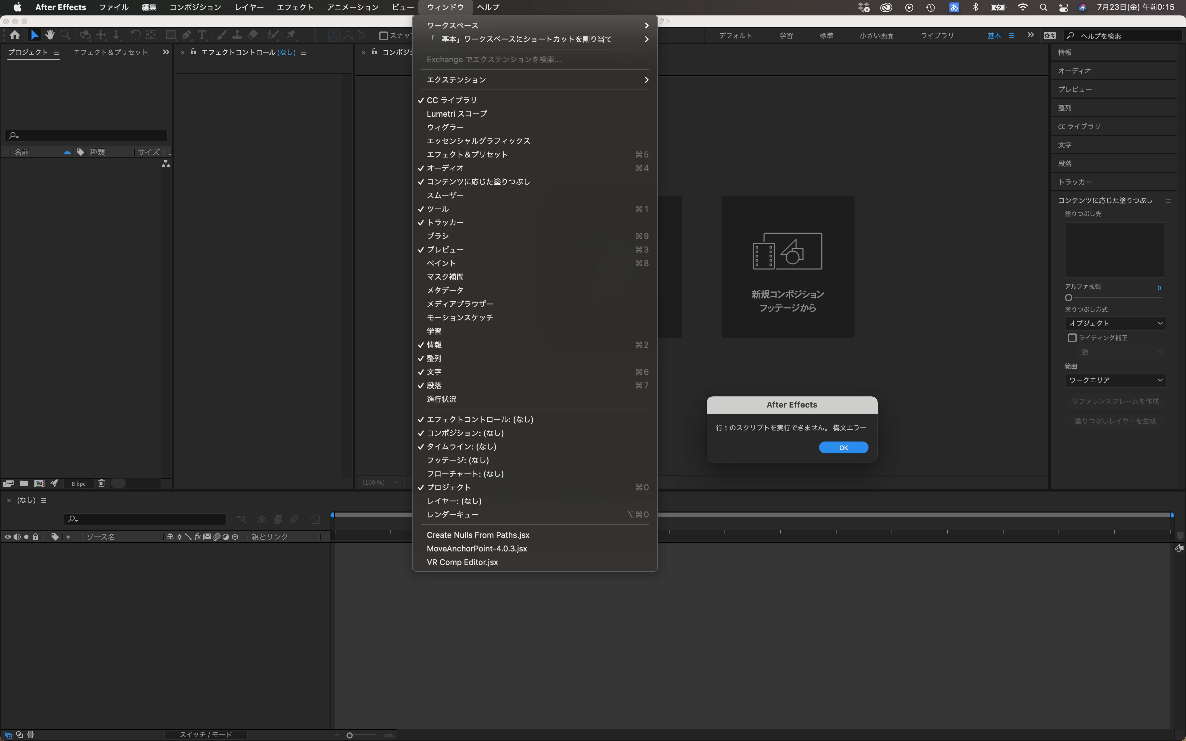 Move Anchor Pointをインストールしたのですが、「行1のスクリプトを実行できません。構文エラー」と表示されてしまい、解決方法がよくわからないのですが、ご教授お願いできますでしょうか?