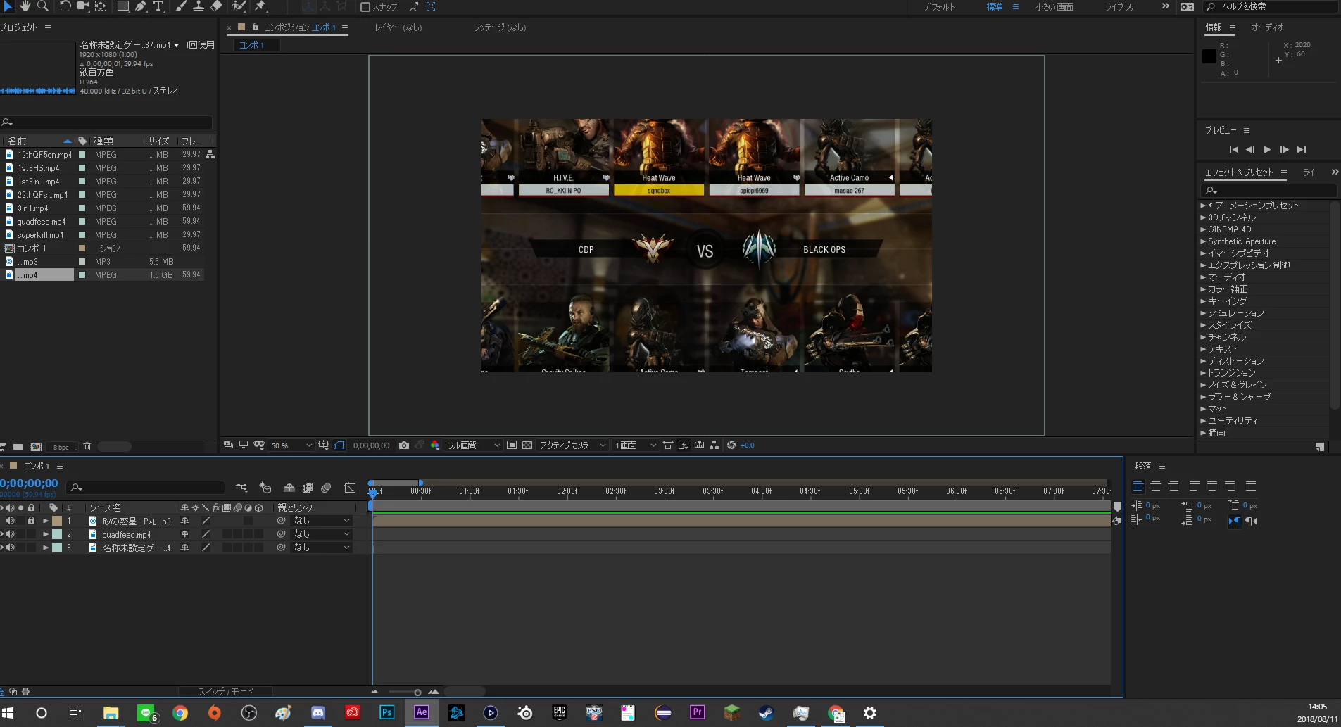 ElgatoでキャプチャーしたものをAdobeCC affter effectで読み込み編集しようとした時に、