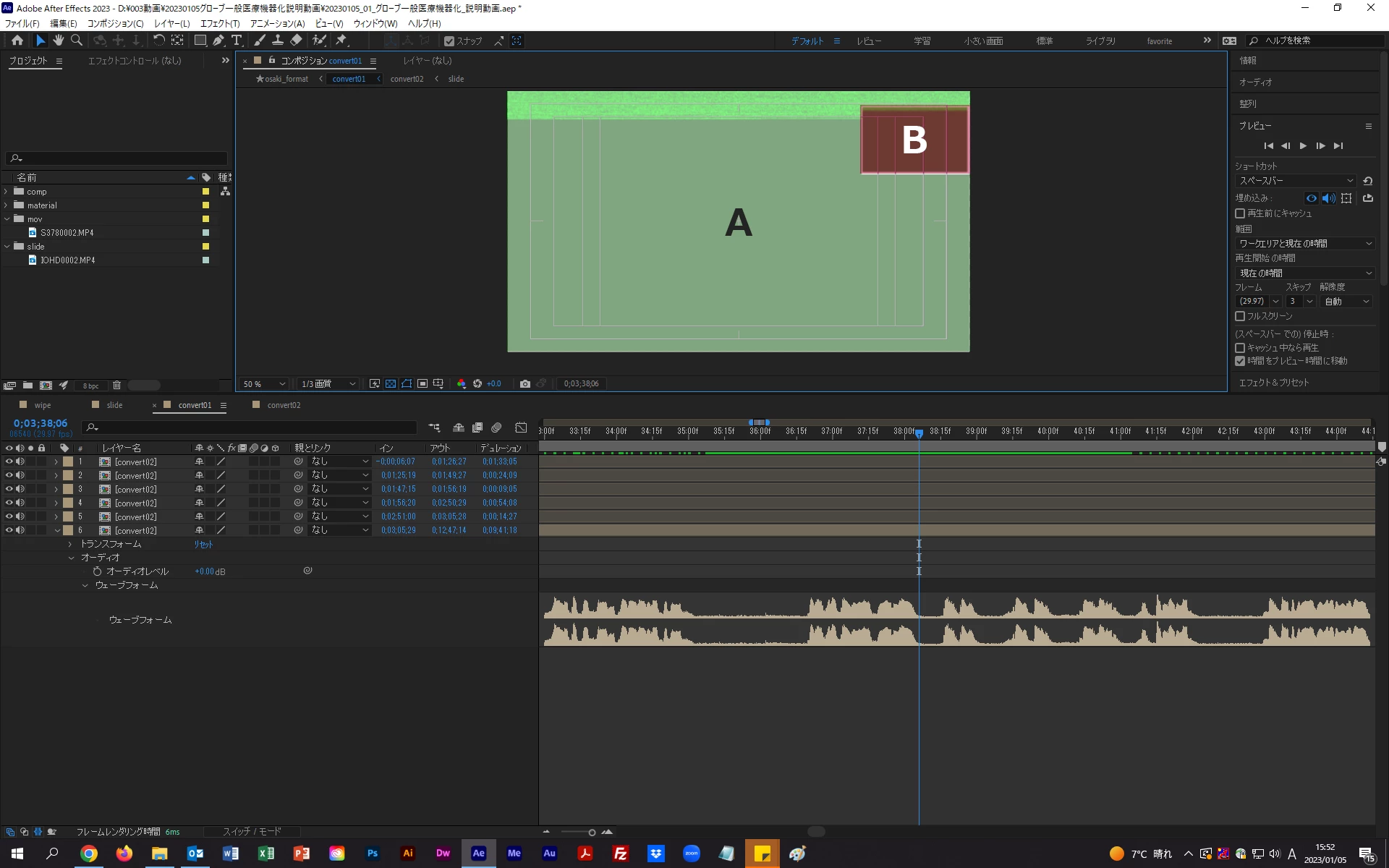 また、説明が分かりづらく恐縮ですが、2個以上のコンポジションをプリコンポーズしているとAのコンポジションの動画とBのコンポジションの動画が逆の場所で再生されるというバグも発生しています。